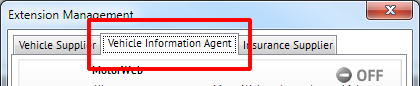 - Next select the Vehicle Information Supplier tab and locate the Motorweb Extension