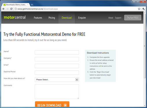 Once you have completed the Registration Form hit the Begin Download button. If completed successfully you will be directed to a new page and the download will automatically begin.